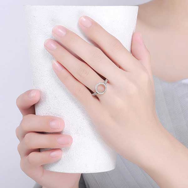 The Angel’s Halo Ring is available in clear or black pavé-set cubic zirconia. This ring has a circle design linked to the band which has tiny cutout hearts around the circle “Halo” as well as the sides of the band. The band is 2mm wide with the circular halo itself being 11mm wide. The design has been oxidised to enhance the details. In addition, the .925 sterling silver has been electroplated with 3 layers of platinum. As a result, this will retain it’s high shine and brilliance.