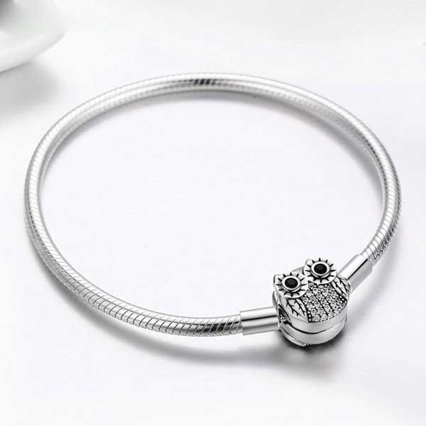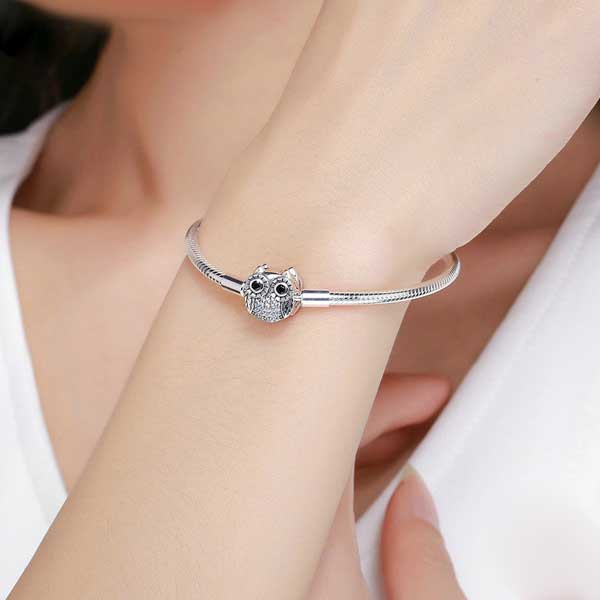 This dazzling CZ Owl Clasp Bracelet is certified .925 sterling silver. Worn individually or stacked, silver bracelets are fashion staples that never go out of style. Transform the bracelet from daytime to evening wear by adding your favorite sparkling charms.