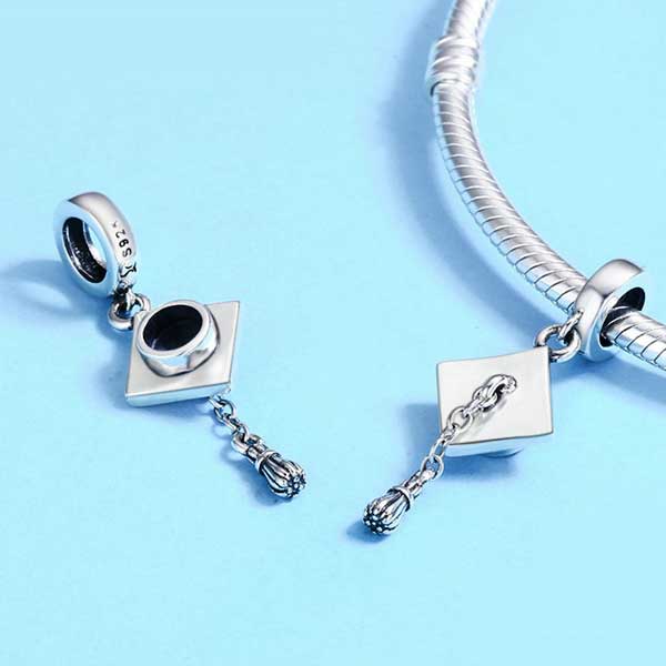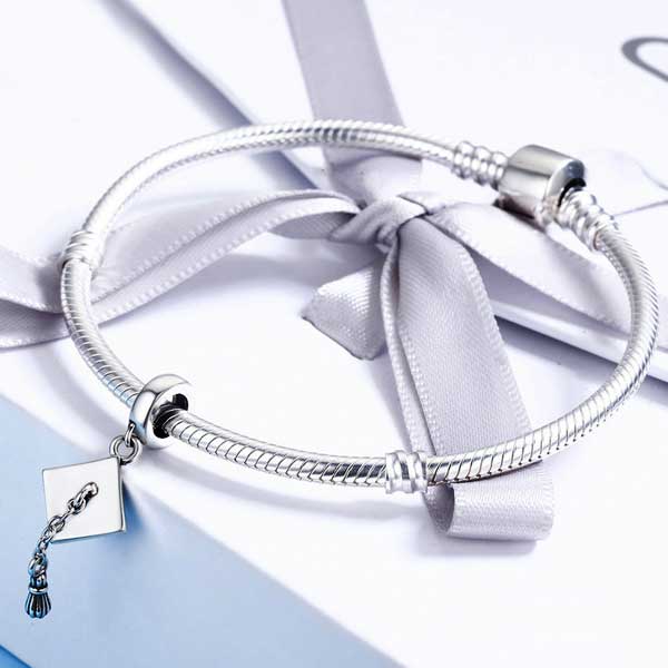 No parent can be prouder when they witness the beautiful moment of their child’s graduation – celebrate this with the Graduation Cap Pendant Charm. The ingenious craftsmanship of this charm portrays the achievement and moment of distinction.