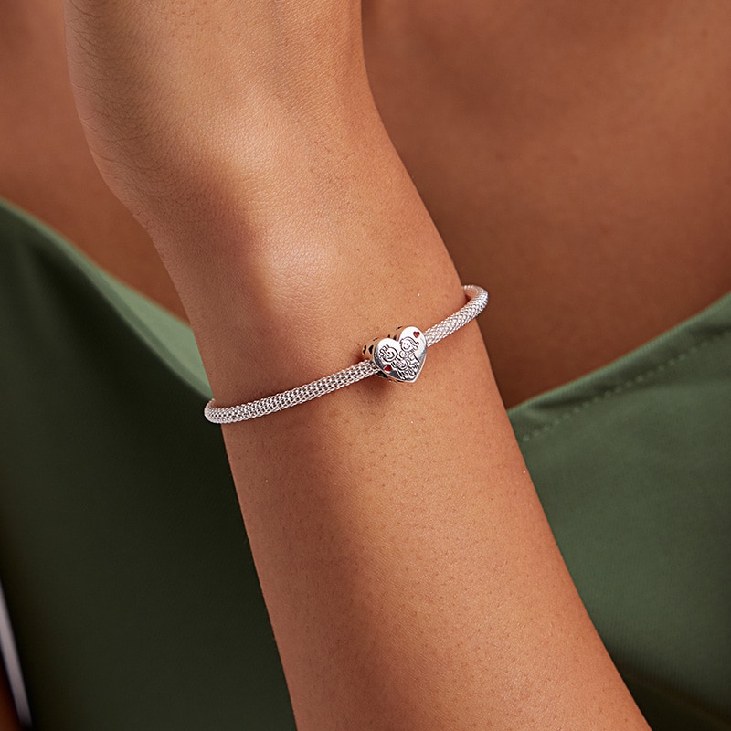 Silver Heart Family Charm