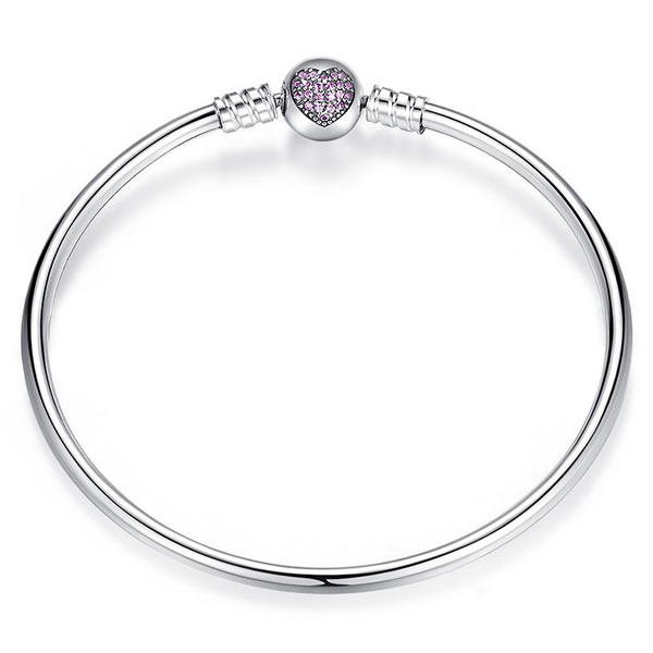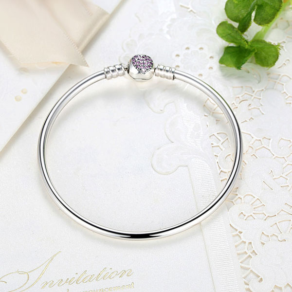 The Pink CZ Heart Bangle Bracelet is certified .925 sterling silver. Worn individually or stacked, silver bangles are fashion staples that never go out of style. Transform the bangle from daytime to evening wear by adding your favorite sparkling charms.