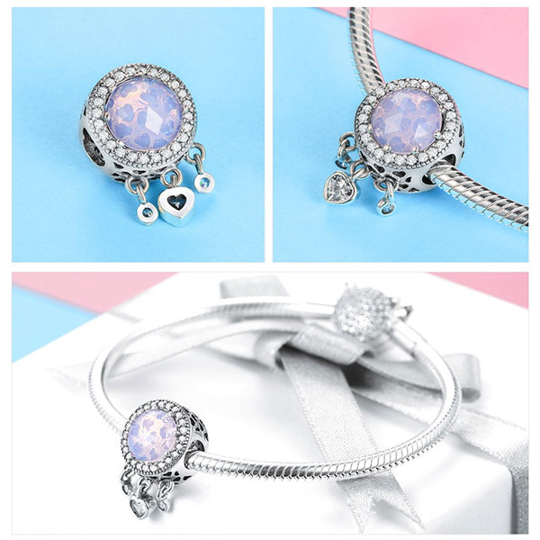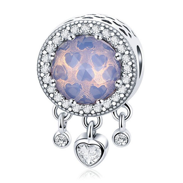 The Radiant Heart Dreamcatcher Charm comes in 3 colour options – soft purple, pink or blue. This charm is fully compatible with all major European charm bracelets and is certified and authenticated as being .925 sterling silver.