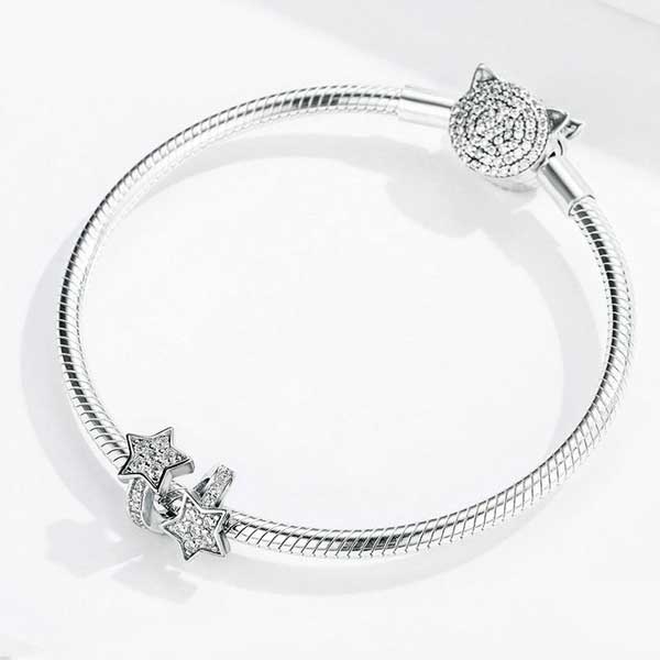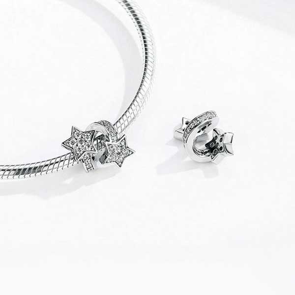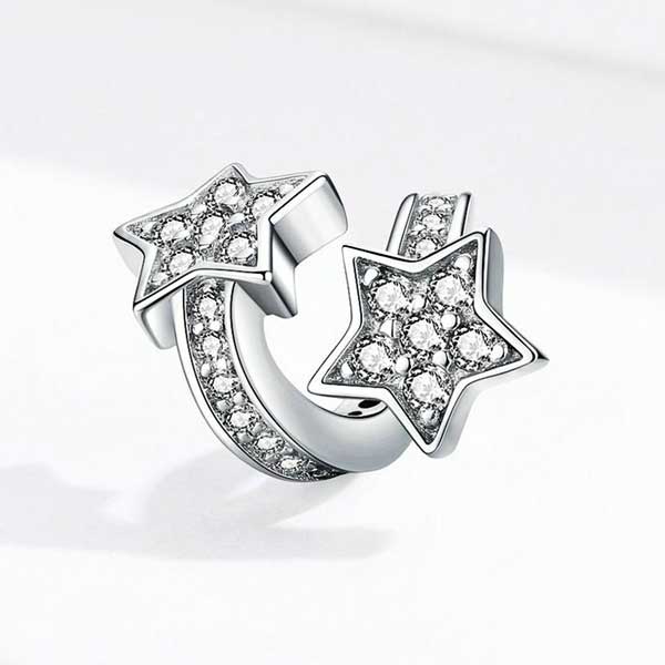 The brilliant Shooting Stars CZ Charm is an original solid design that shows what a star you are! This charm is certified and authenticated sterling silver. Worn individually on your bracelet or as a group this dazzling charm will never go out of style. Fully compatible with all major European charm bracelets.