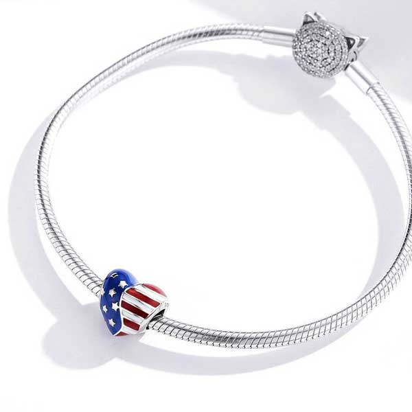 The Stars and Stripes Heart Charm captures the spirit of the United States of America – a symbol of freedom and justice. Whether you want to show off your patriotism or you’ve travelled there and want to add to your memories, this charm will add an element of fun and colour to your bracelet story.